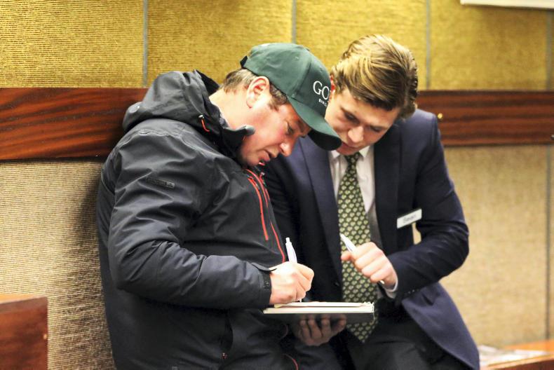 Kevin Ross signs the docket having purchased lot 496, a Tamayuz ex Laftah colt from Lumville Farm which fetched €50,000, on behalf of Kevin Ross Bloodstock, at the Autumn Yearling Sale at Goffs .