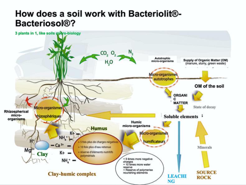 Bacteriosol is composed of vegetal and mineral matter along with a variety of natural composted plants which is capable of rapidly producing soil rich in organic matter.