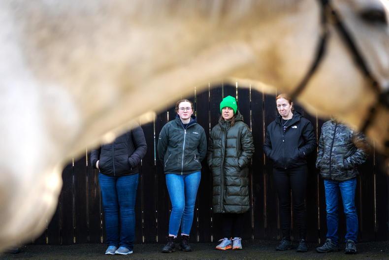 Finn and Brugha Kinsella championing Hurricane Lane at Grange Stud \ Amy Lynam