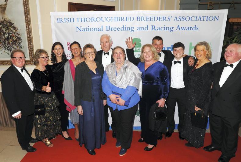 Sandra Russell (centre), winner of the Small Breeder of the Year Award, with (l-r) Tom and Hazel Russell, Joanne Hurley, Gwen Ross, Kate and Jim Nicholson, Sandra Russell, Paula Flannery, Gerry Ross, Dave Russell, Barbara and Gerard Quinlan