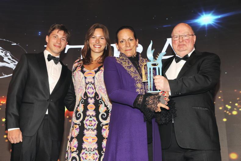 The Donworths were accorded a very special welcome to the stage as they recently sold Roundhill Stud in Limerick and now live in France, closer to their son Tim who trains at Chantilly.