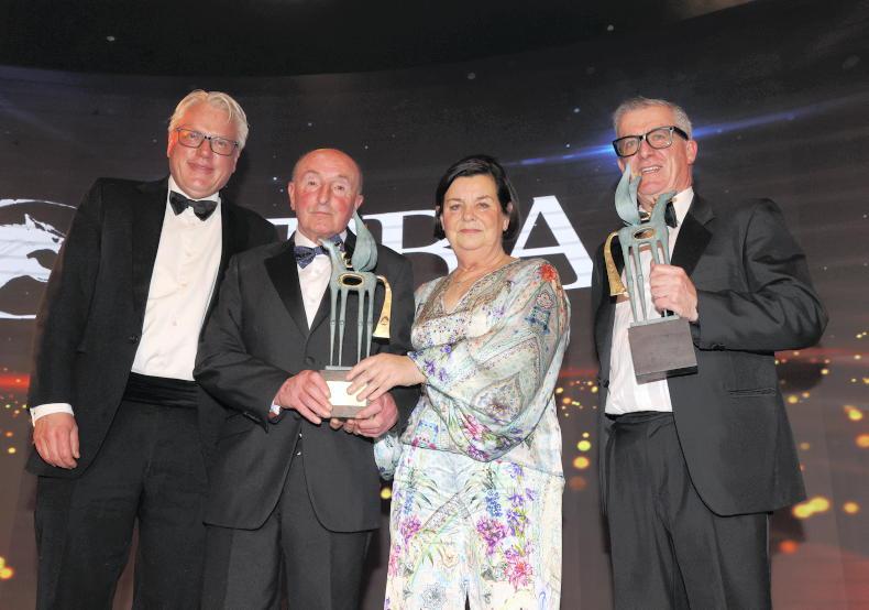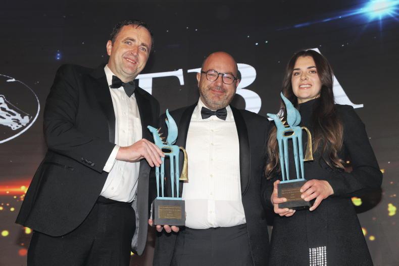 Also much missed last Saturday was Ronnie O’Neill, who posthumously won the Novice Chaser Award as breeder of Cheltenham winner Lecky Watson. His wife Linda and son John collected the award. Lecky Watson was one of three Willie Mullins-trained Grade 1 winners who earned their breeders an ITBA gong.