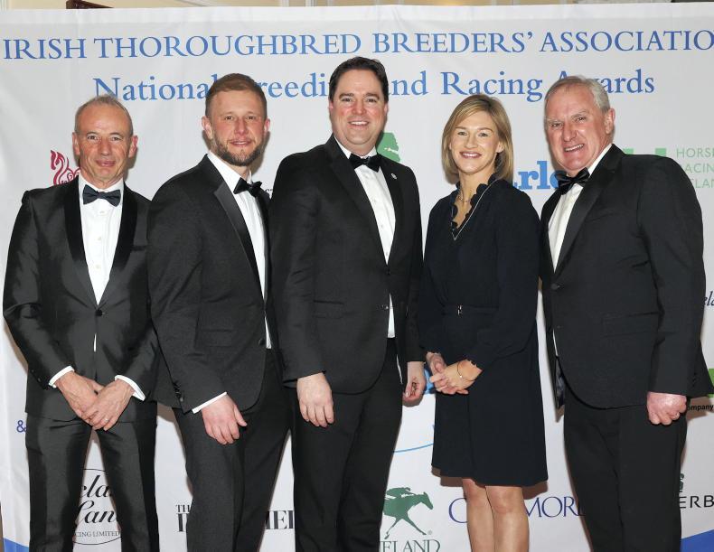 The team from Islanmore Stud in Croom, Co Limerick, made plenty of noise when stud manager Nigel Anderton was called to the stage to receive the Chaser Award on behalf of Noreen McManus, breeder of Gold Cup winner Inothewayurthinkin.