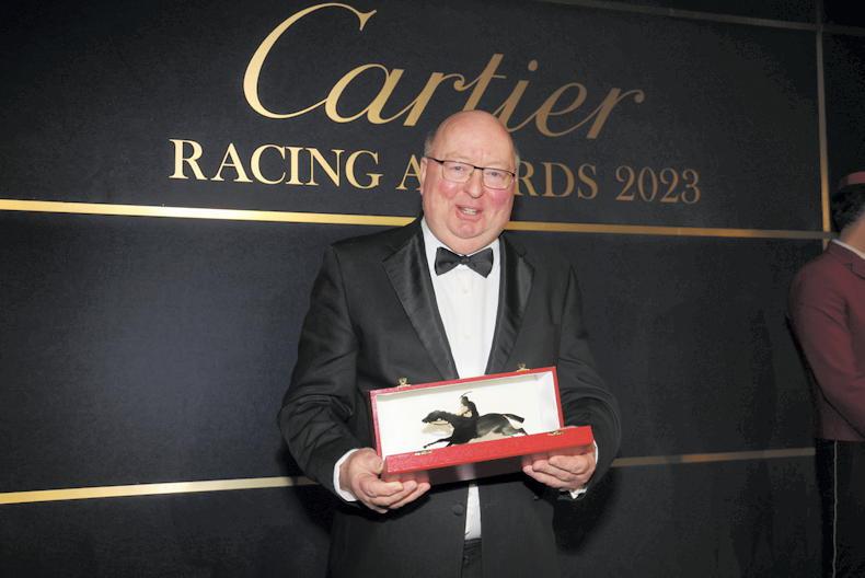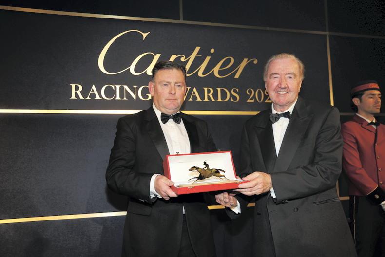 City Of Troy, owned by Sue Magnier, Michael Tabor and Derrick Smith, took the Cartier Two-Year-Old Colt Award following an unbeaten season for Aidan O’Brien that culminated in success in the Group 1 Dewhurst Stakes. He beat off Vandeek, Henry Longfellow and Rosallion, and Christy Grassick was on hand to accept the trophy.