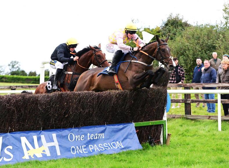Mount Pelier indicated that he will be winning before too long by making a most encouraging hunt racing debut, a further three lengths adrift in third.