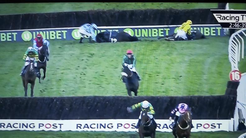 Declan Lavery was another casualty and after partnering Jerrysback into third the rider was suspended for 10 days for continuing in the race when it appeared to be contrary to the horse’s welfare after tired jumping errors at the final two fences.
