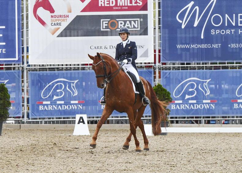 In the EIS Intermediate II championship, the collective scores worked in favour of Limerick-based Dubliner Oliver Donohoe as, on board her Hanoverian gelding Furst Romance, a black 11-year-old by Furst Romancier, she was awarded the same score (66.4) as Belinda Brereton who had to settle for second with her Dutch Warmblood gelding Deco, a 14-year-old son of Painted Black.