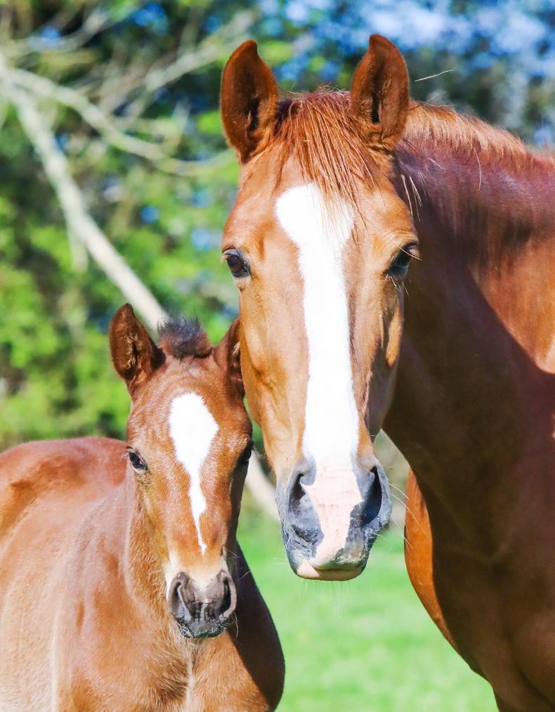 Emme, a half-sister to the Numero Cruise stallion SHS Quattro Cruise, was later sold to Bridget. Competed on the national circuit by Des’ son Jonathan and his partner Sonja Ochadlik, she jumped up to 1.40m level before producing a Jardonnay VDL colt two years ago and now this year’s foal.