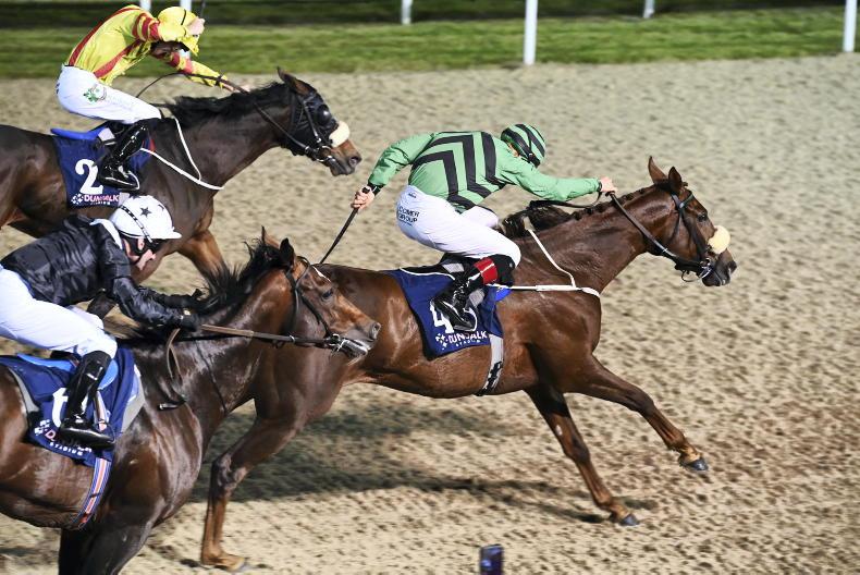 Whearty reported of the Leo Reilly owned winner: “She likes this surface. She also ran well when second on heavy ground at Leopardstown but just hadn’t been firing on turf during the year. Hopefully she will be competitive up here over the winter and I think she’ll get a mile and a half.”