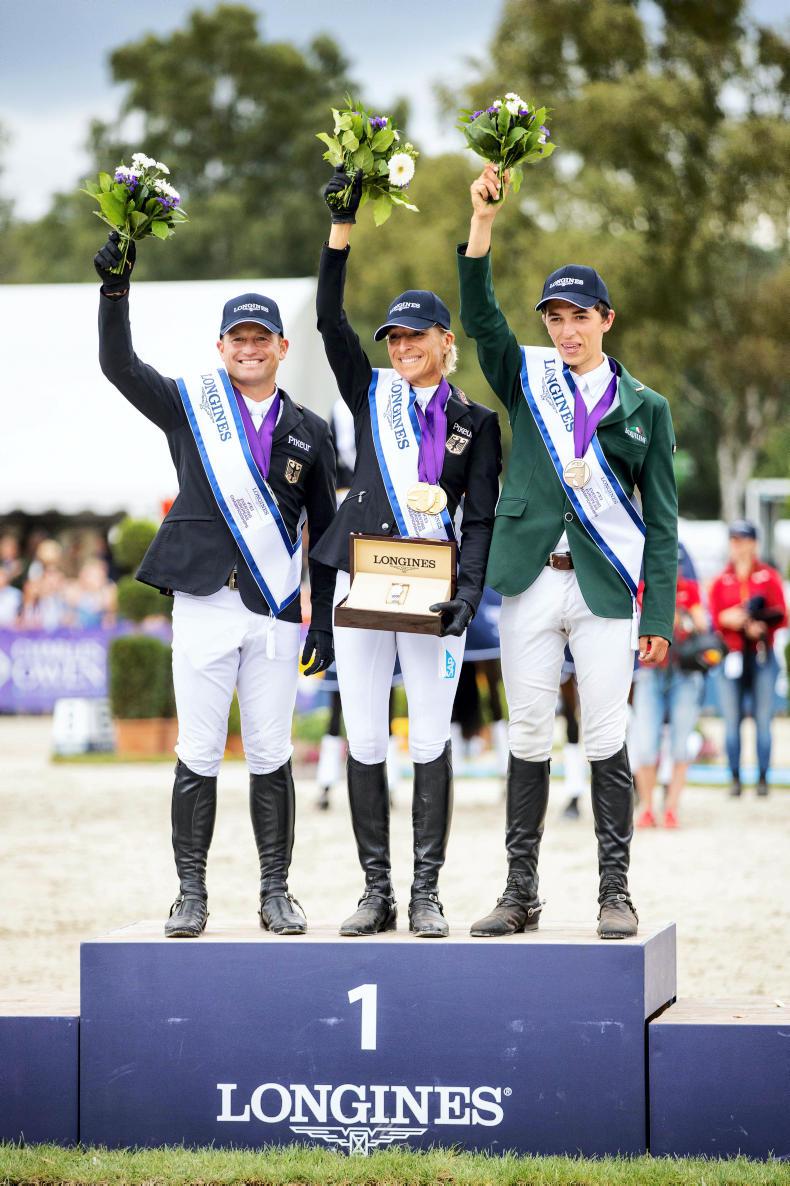 The competition wasn’t decided until the final horse entered the arena. When Jung and fischerChipmunk FRH faulted at the second part of the double near the end of the track, Klimke and SAP Hale Bob OLD moved into the gold medal position.