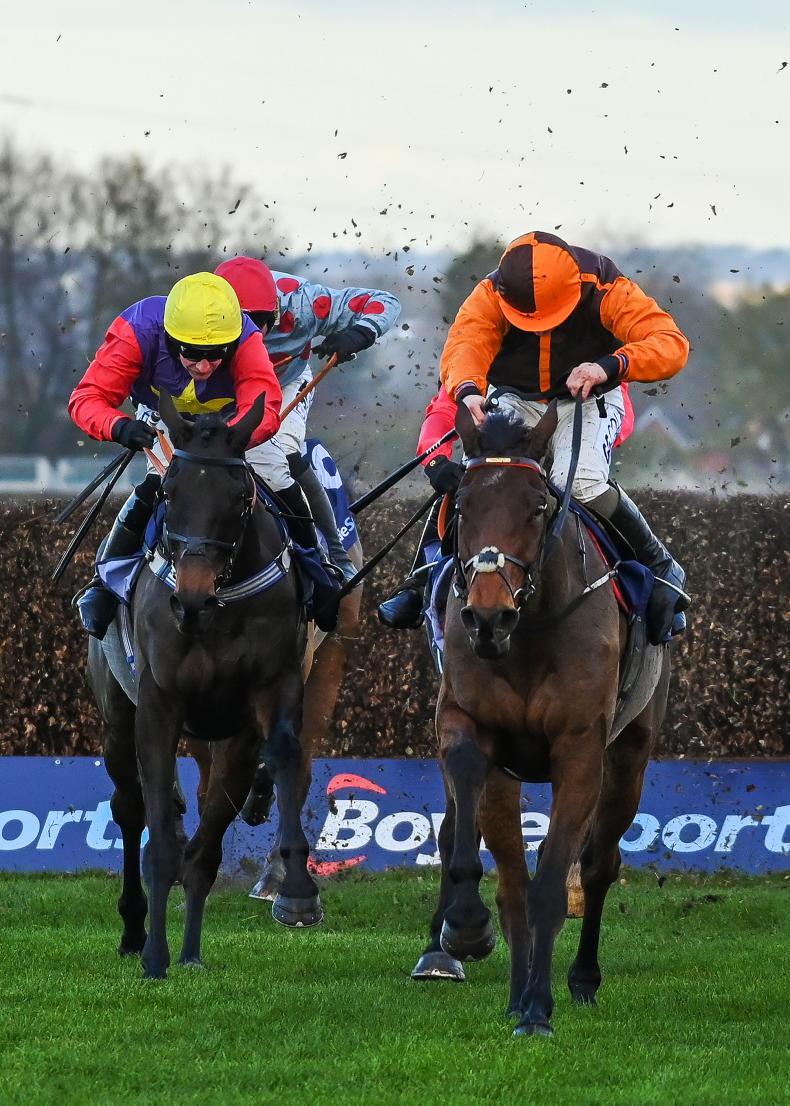 McTigue, in the Paul Byrne colours, got the best of the French, beating St Donats at the end of a battle up the run-in. St Donats looked like he was well en route to a repeat win after his convincing comeback but though he didn’t land perfectly at the last, McTigue managed to outstay his rival with Goliath du Rheu well back in in third.