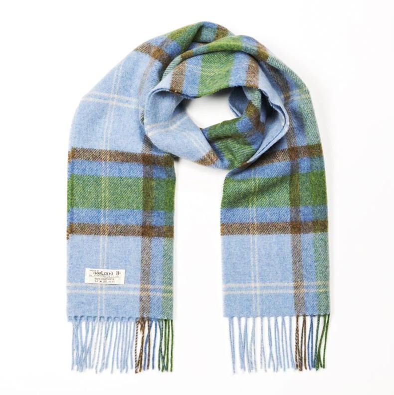 John Hanley Irish Wool Scarf - Light Blue Green Check