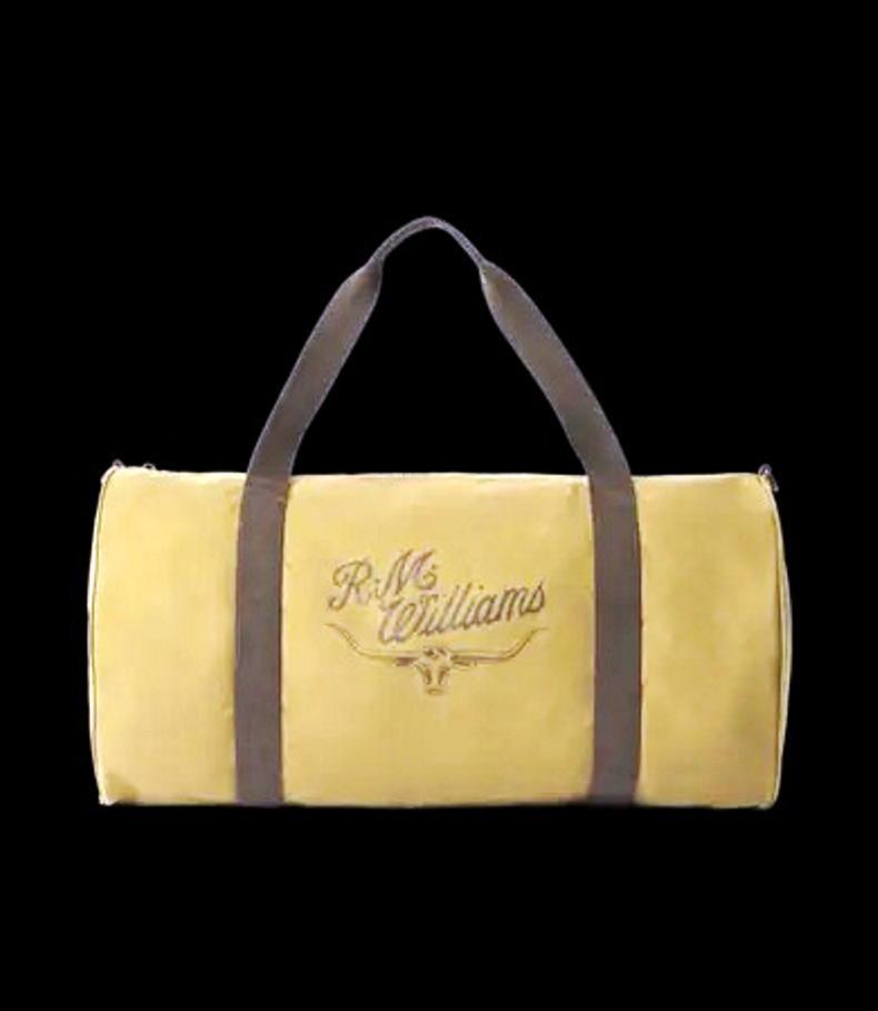 This rugged holdall is cut from water resistant Halley Stevenson’s waxed cotton canvas and finished with canvas handles and RM Williams signature logo details.