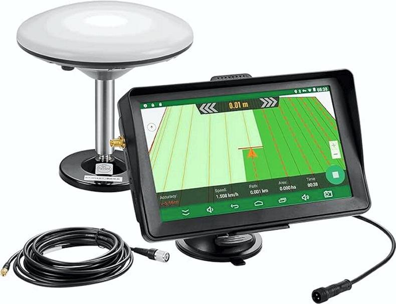 This Android-compatible platform connects via mobile hotspot to deliver real-time positioning that reduces operational overlap by 90%, apparently significantly improving efficiency in sowing, spraying, and other field applications.