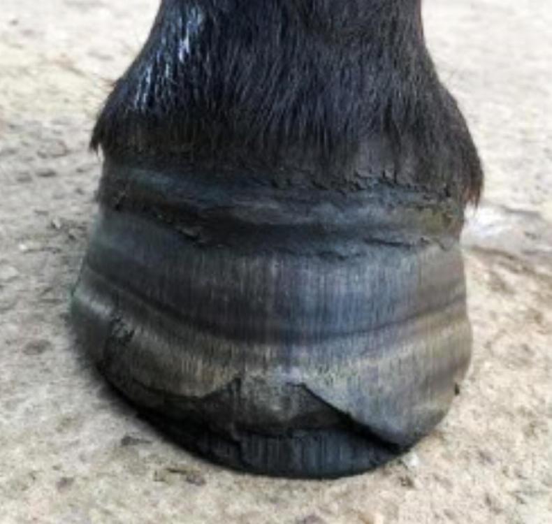 HOOF Wall Separation Disease (HWSD) occurs due to a genetic mutation caused by a single mutated gene, and is known as an autosomal recessive genetic disorder. If a pony has two copies of this mutated gene it makes that animal an affected (HWSD/HWSD) animal, i.e. all four hooves are affected. Defects occur in the horn of the dorsal hoof wall.