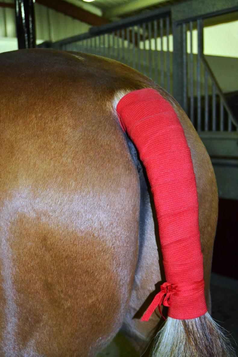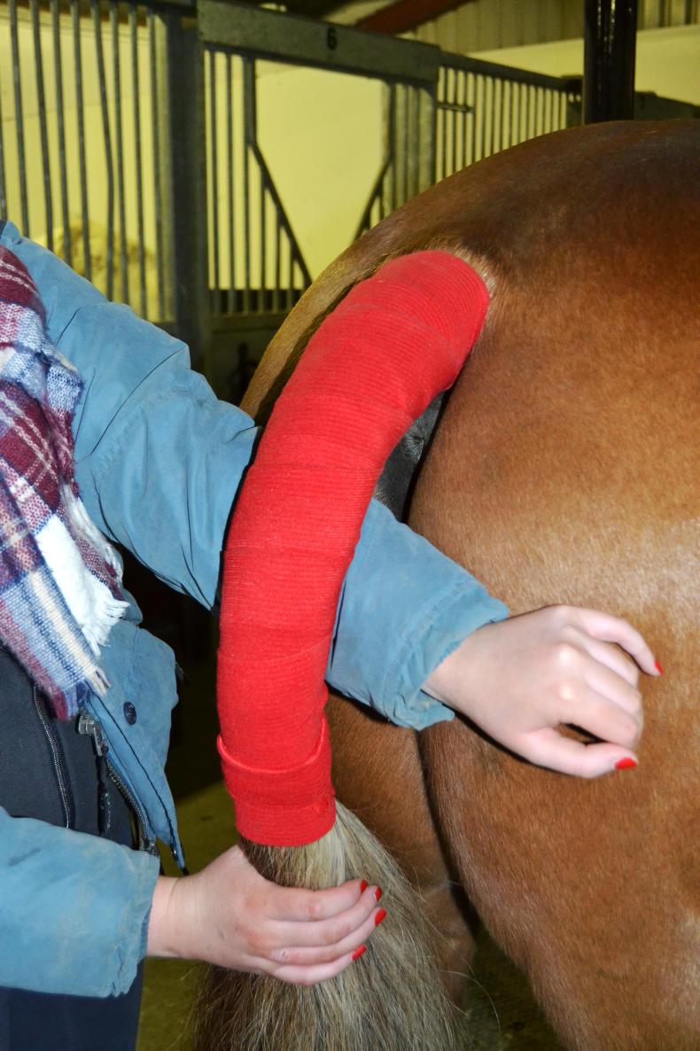 Always ask an expereinced person for help if you are unsure when applying a tail bandage as if it is incorrectly applied it can have damaging effects on your horse and his tail!