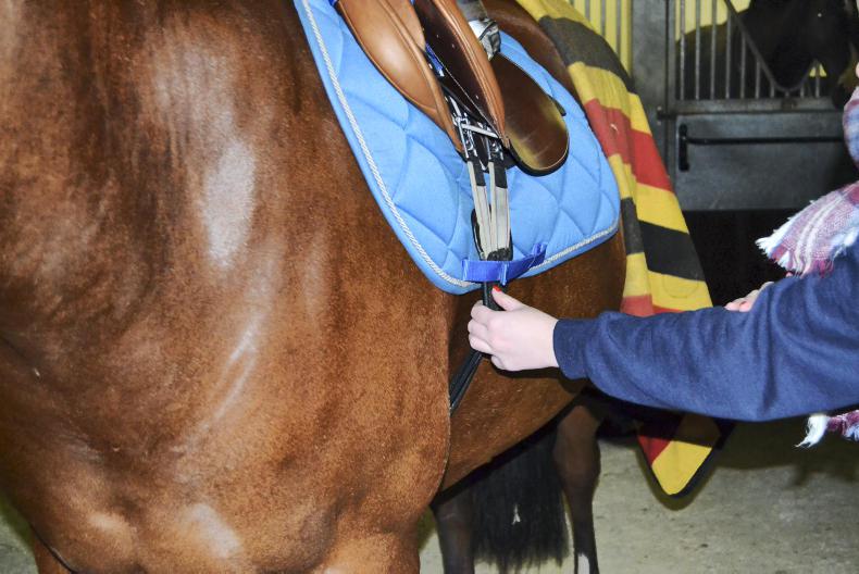 3: DO: Remember to always groom the horse prior to tacking up. Always ensure the coat beneath the tack and girth is free of mud/dirt/sweat, this is to avoid the horse’s skin becoming sore. Try to avoid tacking up your horse when he is wet. (Click here for more on grooming.)