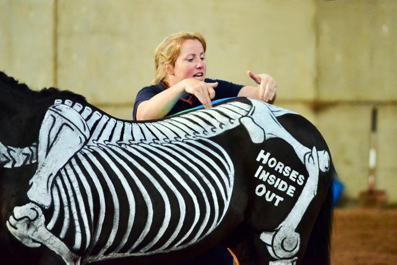 On Friday the RDS Dublin Horse Show welcomed Gillian Higgins and Horses Inside Out (HIO) to Simmonscourt for the first of her demonstrations. Gillian is an authority in equine anatomy and biomechanics, a British Horse Society senior coach, professional therapist and successful author, she also offers courses with expert insight into equine locomotion, training and management. The HIO presentations this week are sponsored by the Equine Science Department at University of Limerick.