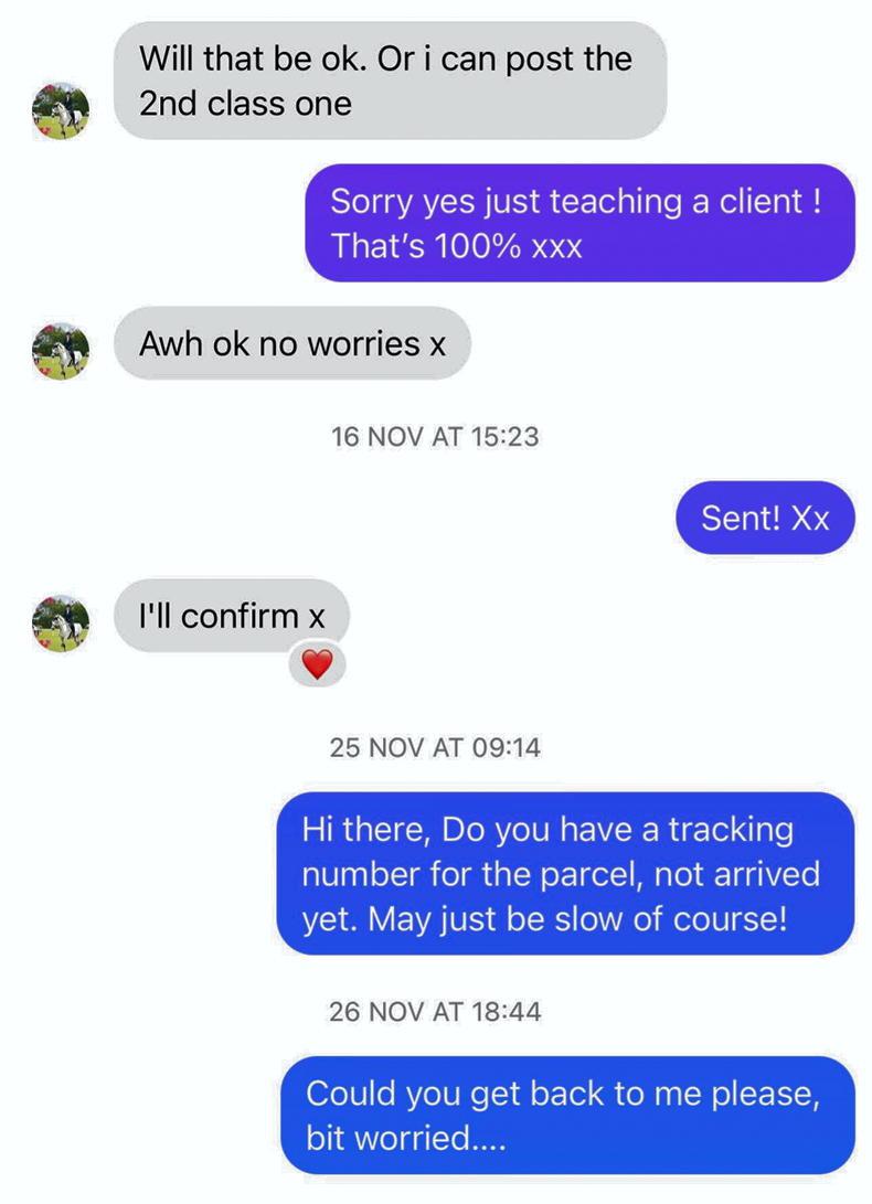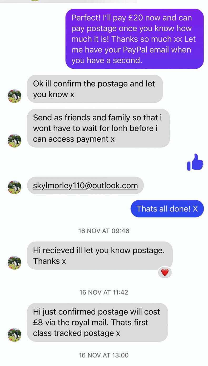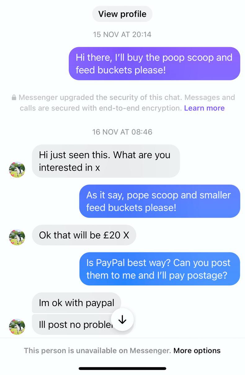 Amid my state of relaxation, my eyes lit up when I saw a stack of said plastic trugs for sale on a local equestrian Facebook site. Nice profile of a woman and her child, very low-key “tack room clear-out” post with a handful of used items for sale: the feed buckets, a poo picker, some hay nets and a couple of other bits and pieces. I thought nothing of it, messaged the woman and she got back to me in a very casual friendly manner and, within a few minutes, I’d paid for my buckets and a poo picker and agreed the £8 postage fee. £28 in total, no big outlay, nice lady, postage confirmation received, done and dusted.