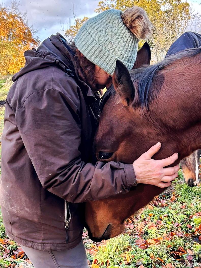 Suddenly we had this nice interaction going on, even without words or signs of expression. It was during one of these foraging expeditions he saw my neighbour’s mare and ran to her. He made his own connection with her. He wanted to go back to her every day, and I knew this mare, I knew she was quiet. He was showing me with his body that he wanted to get up on her, jumping up and down next to her with his arms up. So, I would put him up and keep a hand on him while she grazed. All of his really agitated behaviours went away. I didn’t know why at that point; I know why now. I then thought, well what would happen if I rode with him?