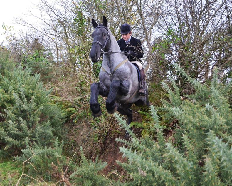 Ciaran Moran of MK Sport Horses hunting a young cob with the Killinick Harriers, this horse was bought by xxx of the Carlow Farmers (Photo: Tom Sinnott)