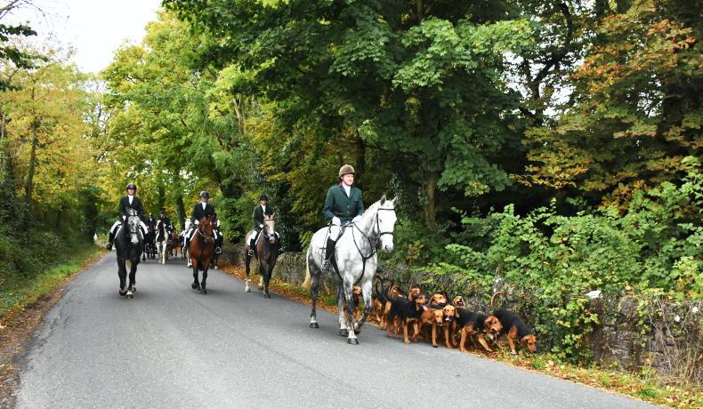 Paul Kerr, who has been huntsman for the last 31 seasons, has a smashing pack of black and tan hounds that are a credit to him as they are so steady and well controlled - and they have to be as the roads are so busy. On the day, his daughter Catherine, and Nathan Barrett, a son of Colin, a farm manager at The Irish National Stud, were whipping-in.