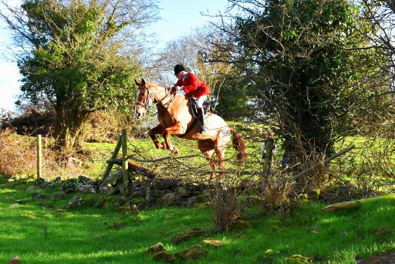 Hunting also was Judith Evans whose daughter Molly works for trainer Sam Griffith in Dorset, Emma Byrne, Barney McConville, visitors from the County Down Staghounds Norman Walsh and Joanne Martin, and Bartley’s nephew Ross Reynolds who was riding a smashing Connemara.