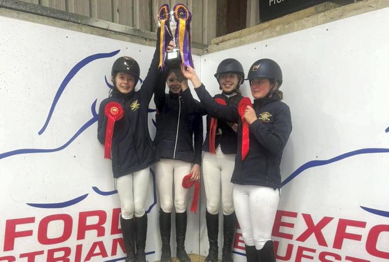 St Mary’s New Ross also took third place with its other team, which was Laura Neville on Coolafinka Queen, Mia Kent and Queen’s Cornet, Aoife Cummins on Ahabrook Storm and Hannah Kate Crosbie and Magic. Good Counsel College, Bridgetown and Gorey CS/ Presentation Wexford were fourth, fifth and sixth. The final league point on offer went to Presentation in seventh.