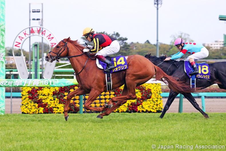 GEOGLYPH came through the final strides to win the Satsuki Sho (Japanese 2000 Guineas) at Nakayama Racecourse by a length over Equinox.