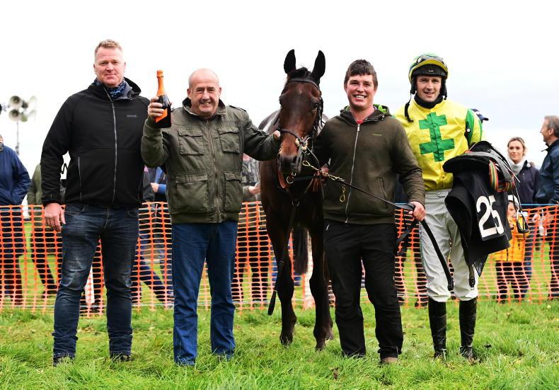Derek O’Connor won the first two races on the Tuesday, finishing alone in the two-runner confined hunt winners’ of two on the Graham McKeever-trained Fort View Wings who carried the colours of the late Peggy Hagan. The Crawford brothers won the open with the late Seamus McAlister’s Strongpoint.
