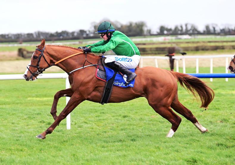 Paul Townend donned the Gigginstown colours on the £190,000 purchase and he came to lead at the last before recording a length-and-three-quarters success over Monty’s Star.