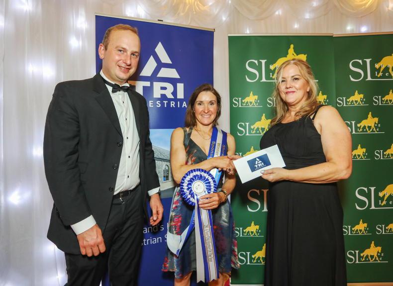 Nicola Perrin receives her sash and prize from Lorraine Keith of TRI (sponsor) after winning the overall title in the four-year-old division with Rathmorrissey Lord Of The Dance. Also pictured is Aubrey \ Siobhan Engligh