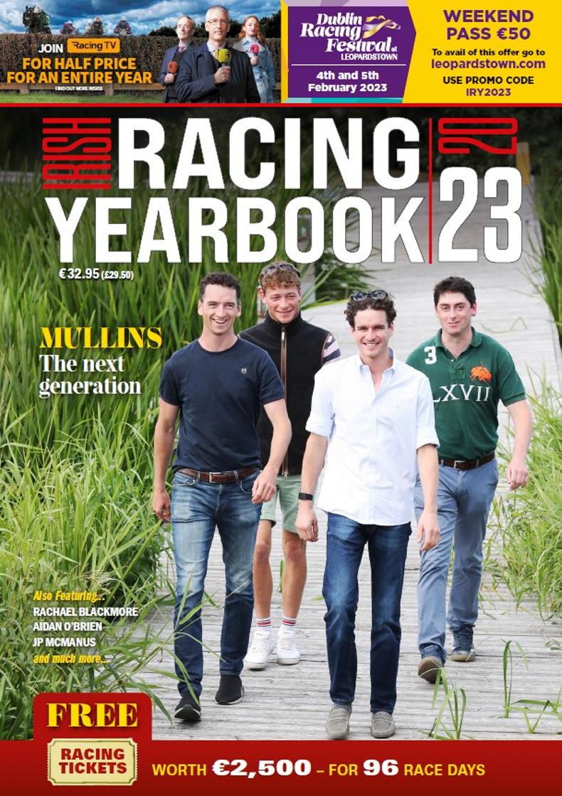 COPIES of the Irish Racing Yearbook 2023 (€32.95/£29.50) are now on sale in all good newsagents and bookshops. It can be ordered online (irishracingyearbook.com) or by phone (056 7761504).
