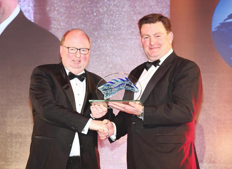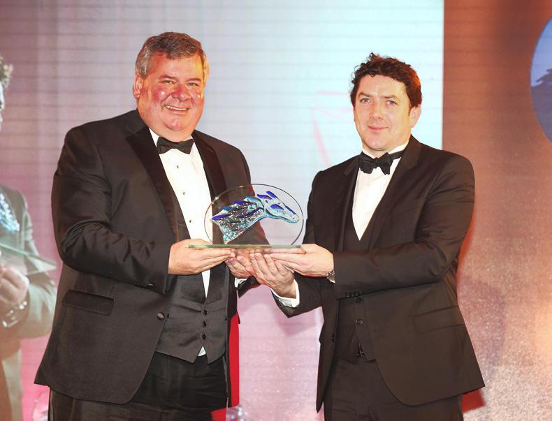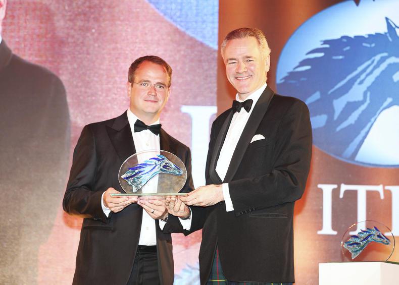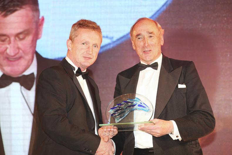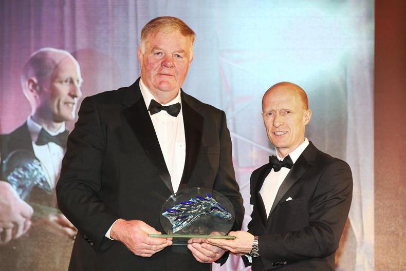 William Flood accepts the Contribution to the Industry award from Simon Kerins of Tattersalls Ireland