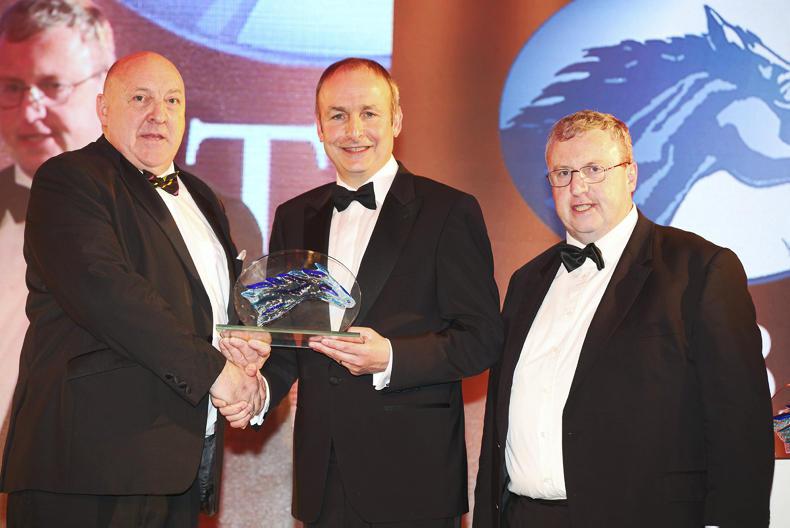 Annie Power's breeder Eamon Cleary received the Hurdler award from Micheal Martin TD and Brian Kavanagh of HRI