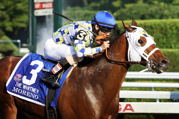 Southern Equine Stables’ 10/1 shot Moreno went gate-to-wire in the nine-furlong $1.5 million Grade 1 Whitney Invitational Handicap at Saratoga in New York last Saturday. The four-year-old gelding by Ghostzapper easily held off Itsmyluckyday and Will Take Charge to finish a length and a quarter clear for jockey Junior Alvarado.