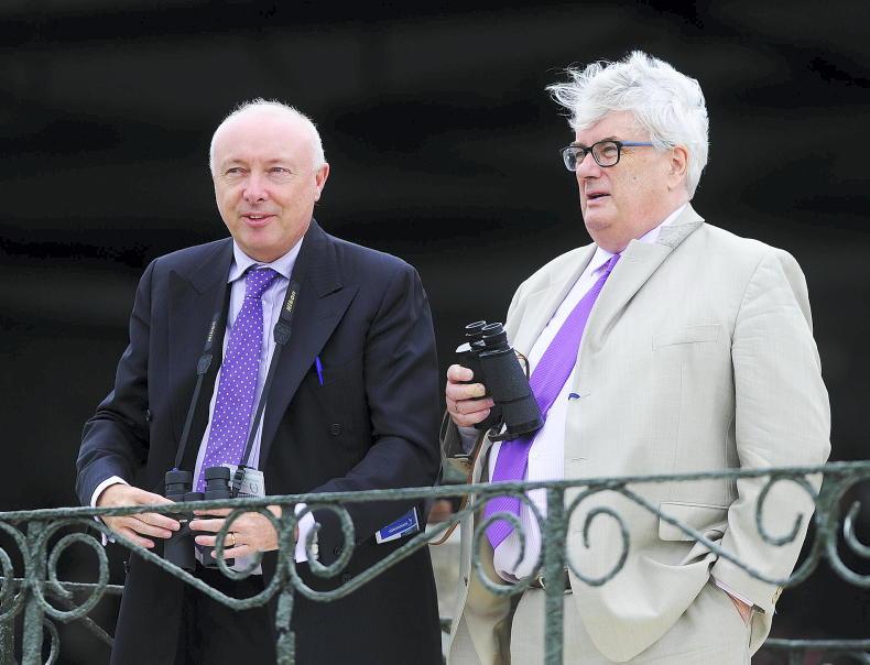 Chief Justice Frank Clarke (right), pictured here stewarding at Kilbeggan with Judge Tony Hunt in 2018 / Healy Racing