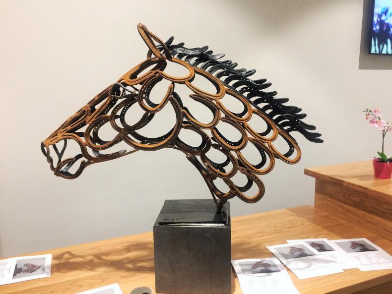 Using 18 steel shoes worn by some of the greats of the turf, Tom sculpted a racehorse’s head and this unique creation was widely admired by everyone at this week’s awards. The shoes used were worn by the likes of Istabraq, Dawn Approach, Invincible Spirit, Special Tiara, Sea The Stars, Rule The World and Don Cossack.