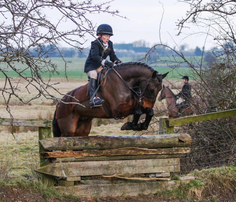 Marcus Mc Loughlin MFH (Laois) showed the field how its done over a big ditch (Photo: Catherine Power)