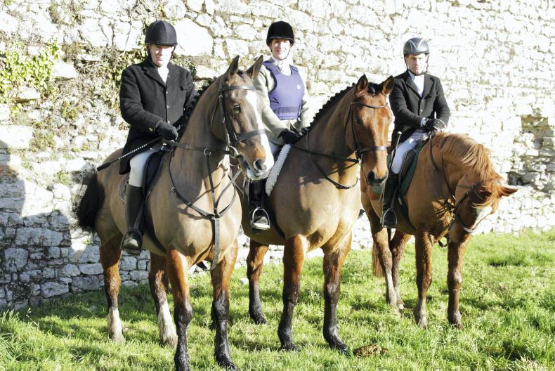 P J Dore, Ashling Relihan and field-master David Moran with the Stonehall Harriers (Photo: Catherine Power)