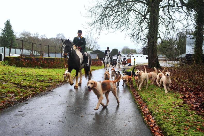 Laois Hunt invade Stonehall. Led by David Lalor MFH and chairman masters of foxhounds (Photo: Catherine Power)