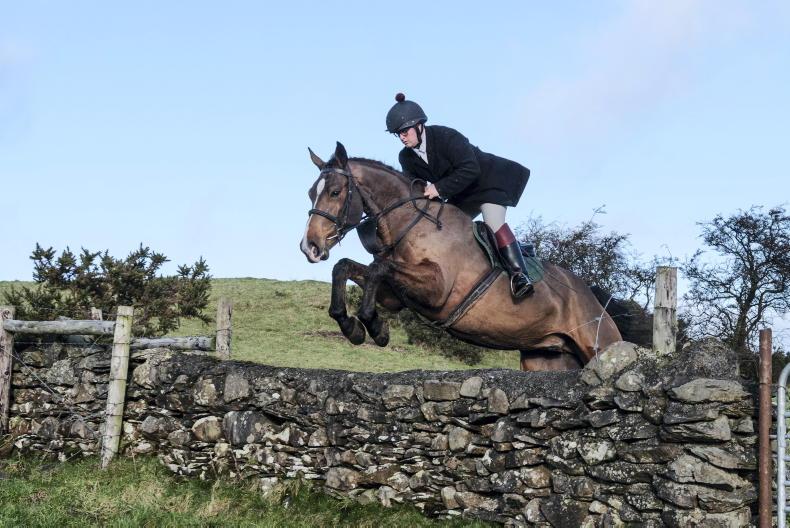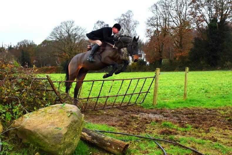 Horse producer Aubrey Chapman in action over a gate at the Wicklow Foxhounds meet at Coolgreany \ Noel Mullins