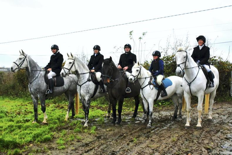 Three generations of the Coade family, Parish, Kitty, Kevin, Kayla and Elaine at the Wicklow Foxhounds meet at Coolgreany \ Noel Mullins