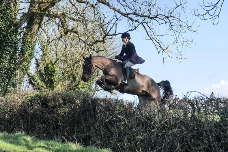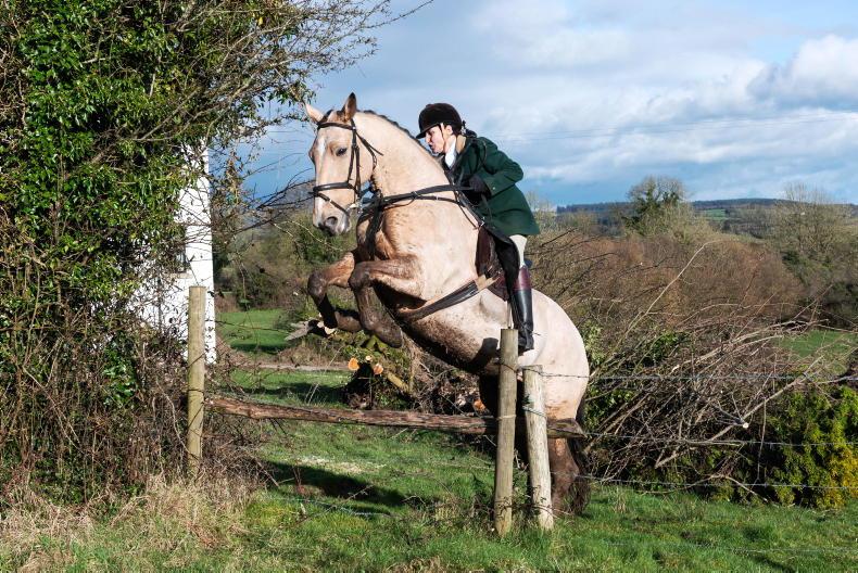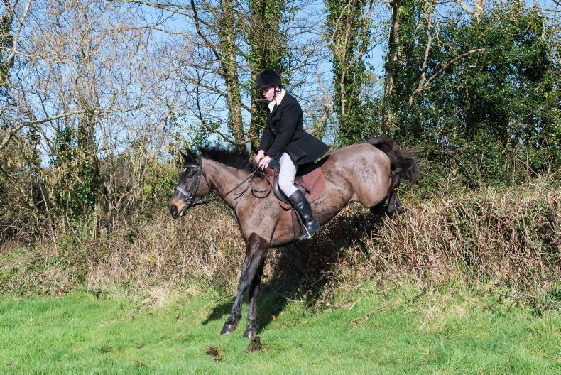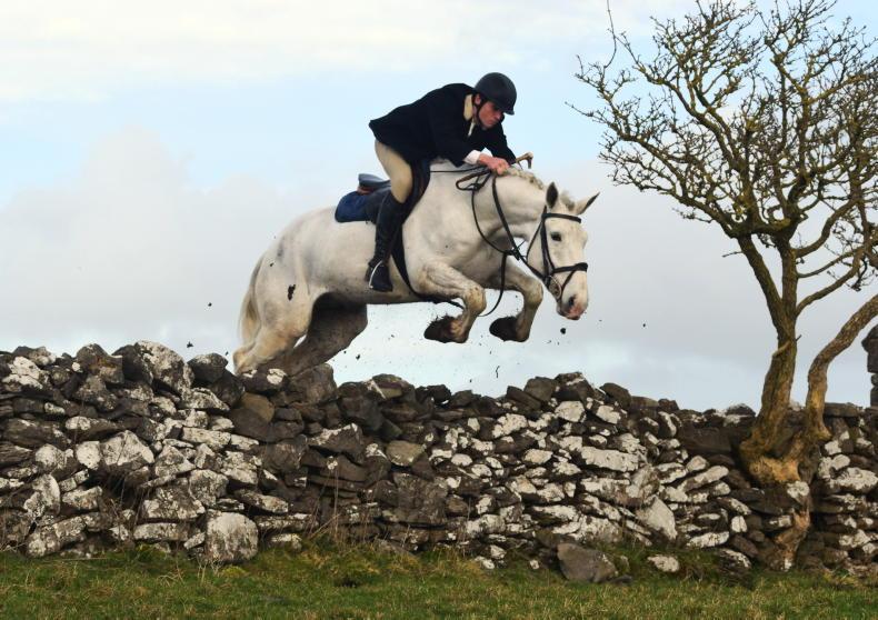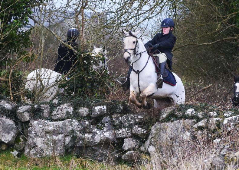 Millie Rabbette crossing country with the North Galway Foxhounds \ Maura Morrin