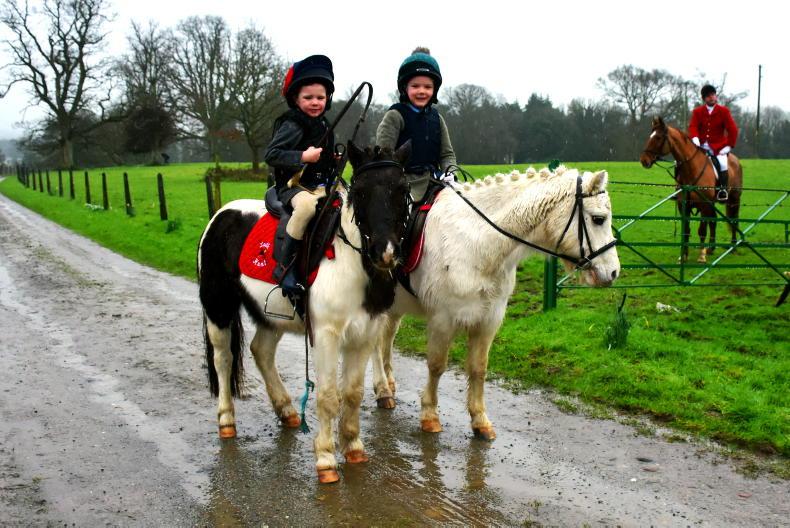 Hugo (3) and Jessica (5) Nevin at the Louth Foxhounds meet at Barmeath Castle \ Noel Mullins