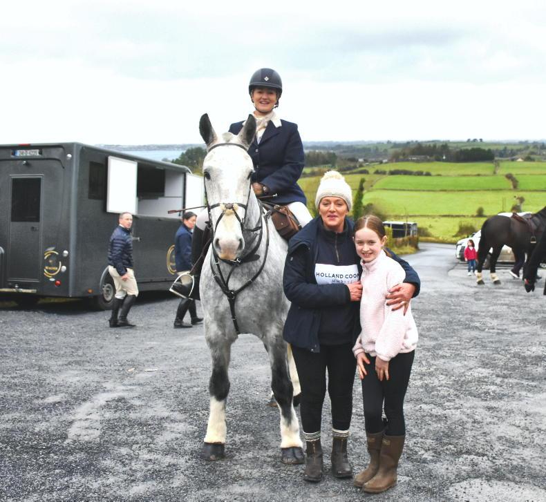 Blazers joint master Ella Coffey with her daughter Karen mounted and grandaughter Chloe at The Galway Blazers meet at Aille Cross \ Noel Mullins