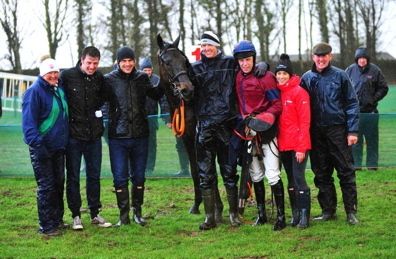 Saint Freule and Jimmy O'Rourke in the winners enclosure with connections after winning at Bandon point-to-point (Photo: healyracing.ie)