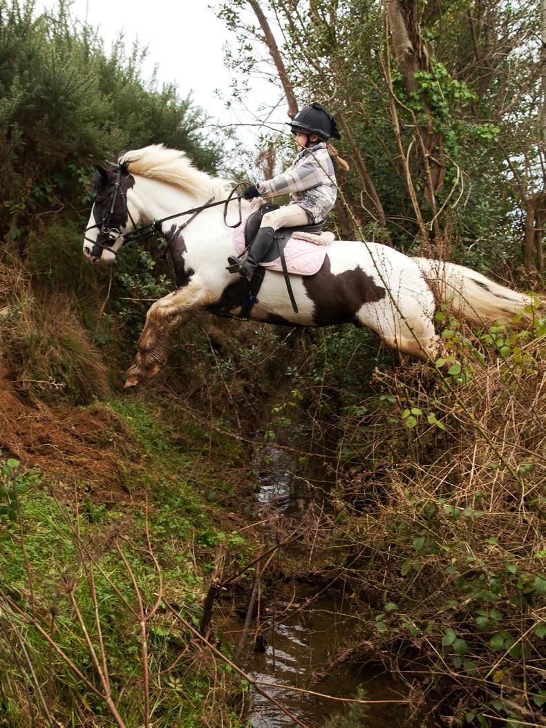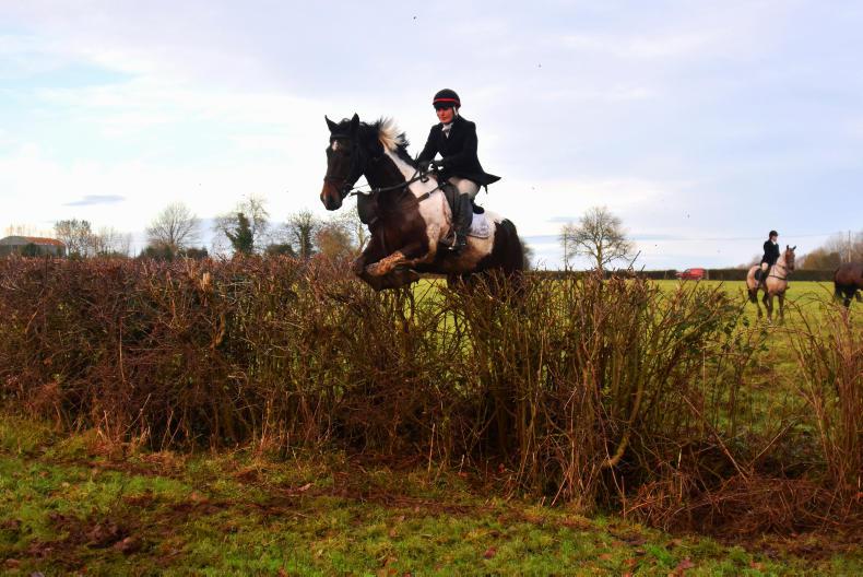 Cait Stafford and her horse Tevez having a pop with the Wicklow Hunt meet in Ballymoney (Photo: Ken O'Mahony)