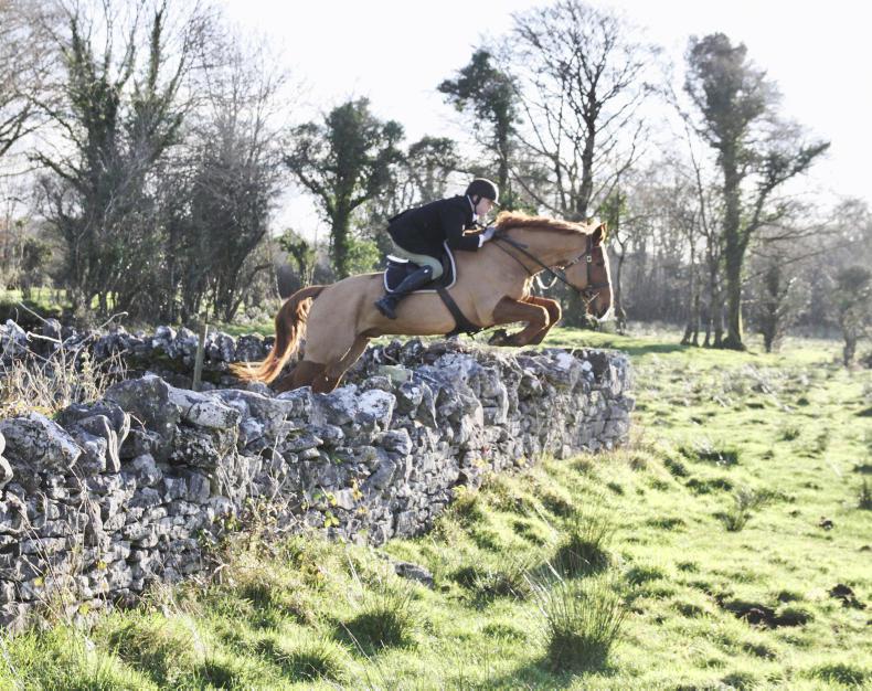 Darragh Hassett shows how to jump a Clare wall with the Co Clare Foxhounds (Photo: Catherine Power)