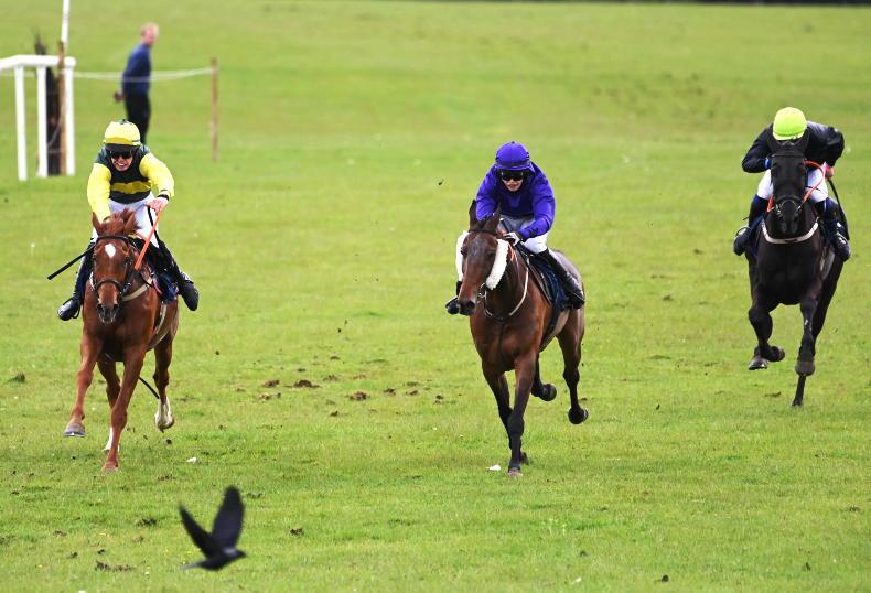 JUST three of the five who set out for the mares’ open managed to complete the course, with Getawayrooney (2/1 – 9/4) ultimately running out a decisive winner in the colours of owner/breeder Michael O’Neill.